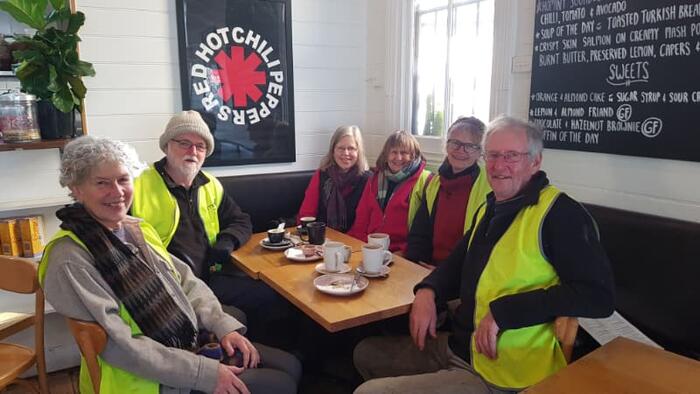 During this time, and while enjoying their after work coffee, another source of "waste" was identified, namely used coffee grounds. Since the beginning of the GoLlies in 2018, the Red Door Cafe has generously hosted the volunteers with a free coffee in appreciation of the work being done. It was an obvious synergy, the waste coffee grounds from the Red Door could be used as material for the compost heaps, and solving one waste problem for them. This also added another dimension to the experiment, how to include other businesses.